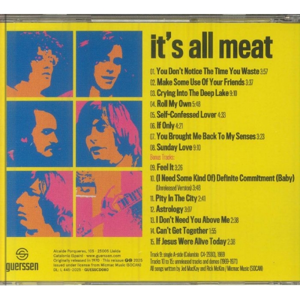 "It's All Meat" was released in 1970 and offered a powerful mix of garage-rock, psychedelia and early hard-rock, drawing influences from bands like the Stones, Country Joe & The Fish, Doors, Velvet Underground...tracks like "Roll My Own" or the lysergic "Crying Into The Deep Lake" are now considered classics of the genre.