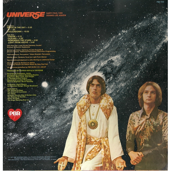 Universe's lone 1977 LP cloaks Hawkwind-meets-Syd-Barrett psychedelia in Yes-scale grandeur, with dexterous keys, swirling synths and ten-minute epic "Touchdown" propelling an ethereal, subtly spiritual voyage through cosmic Americana. The result is a heady acidprog reverie, equal parts celestial hymn and spacerock odyssey, that ranks among the great hidden treasures of 70's U.S. prog.