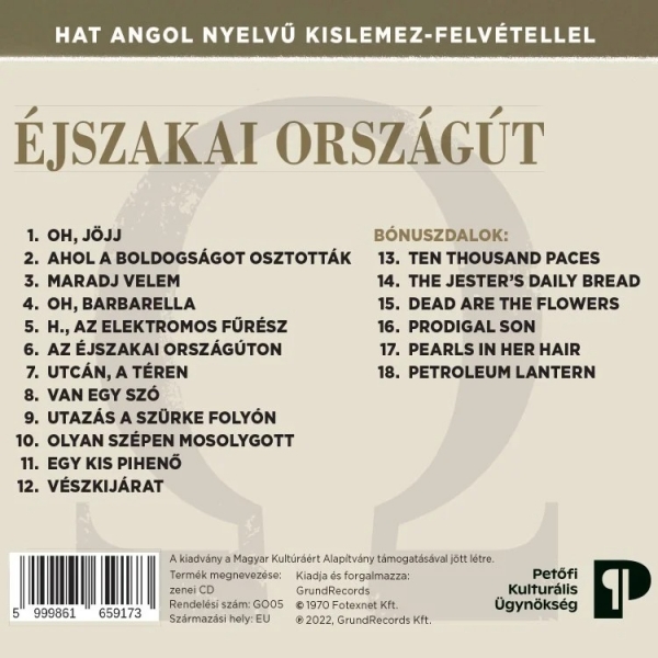 „Éjszakai országút" (Nocna wiejska droga) stanowi dalszy rozwój brzmienia albumu „10000 lépés" (10 000 kroków) w kierunku progresywnego heavy rocka z surową gitarą i energiczną grą na organach. Album został ponownie wydany w eleganckiej, tym razem ciemnej, rozkładanej okładce.